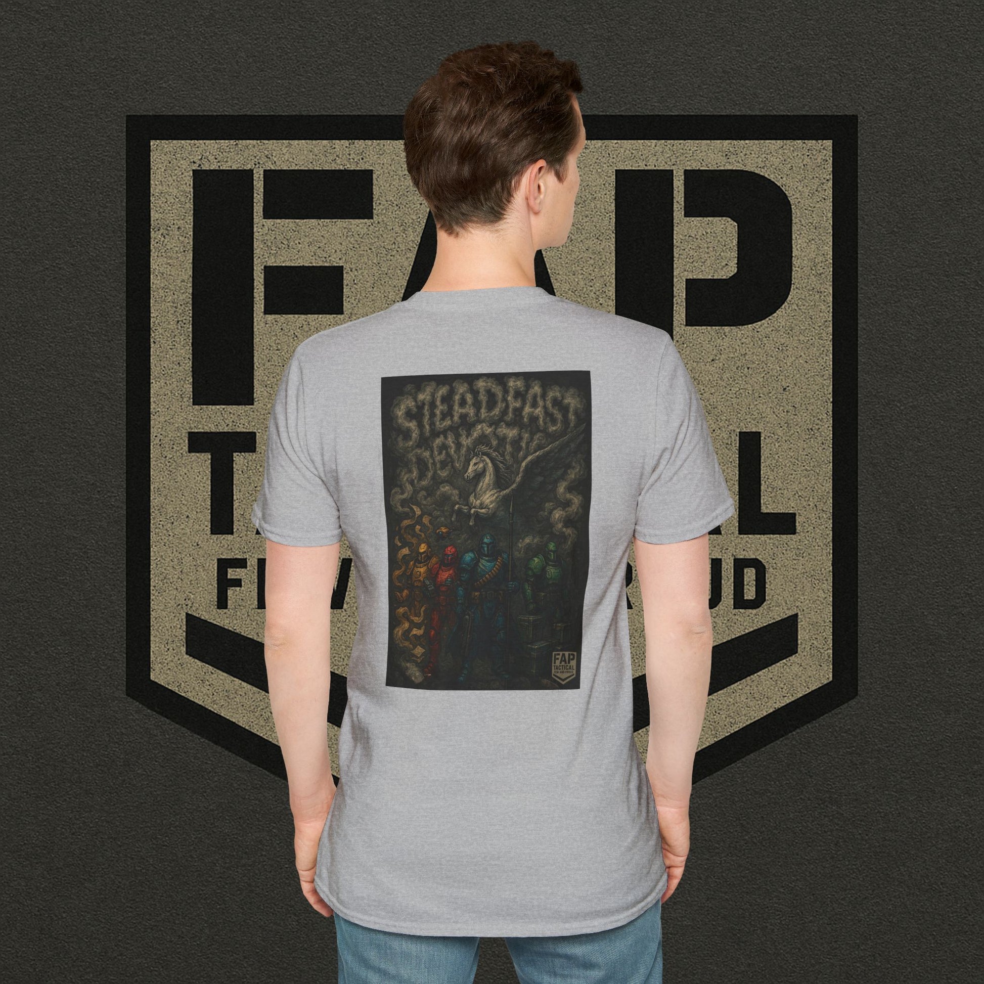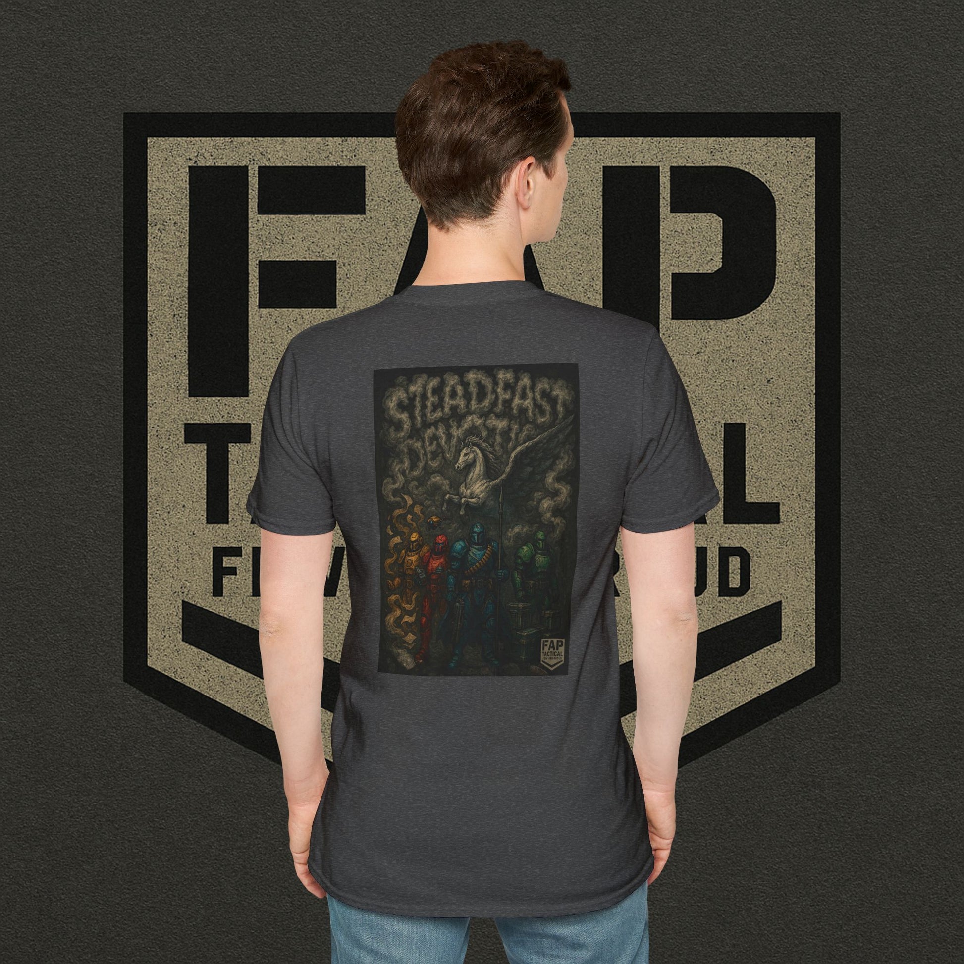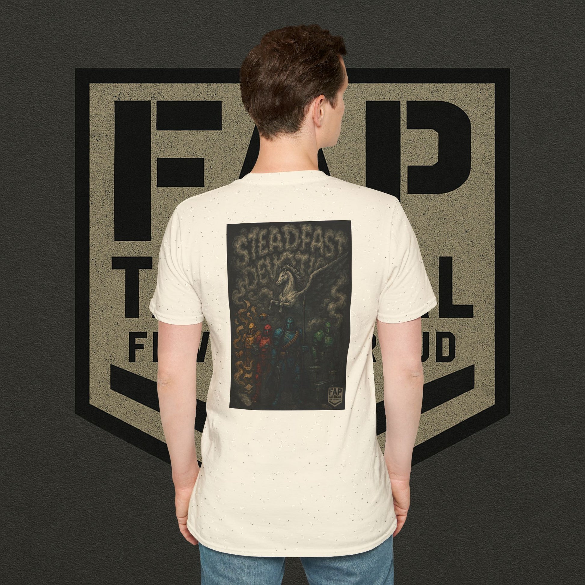 A crisp, lightweight tee built to be worn every day and to stand out without shouting. The front carries a small, subtle emblem over the heart, while the back shows a bold, illustrated figure rising through curling smoke under the headline “SET THE PACE.” The soft ring-spun cotton feels smooth against skin and keeps prints sharp; ribbed neck and shoulder tape hold the shape through repeat wear. Wear it layered under a jacket for urban nights or alone on warm days — it reads like attitude and steady craft in one shirt.