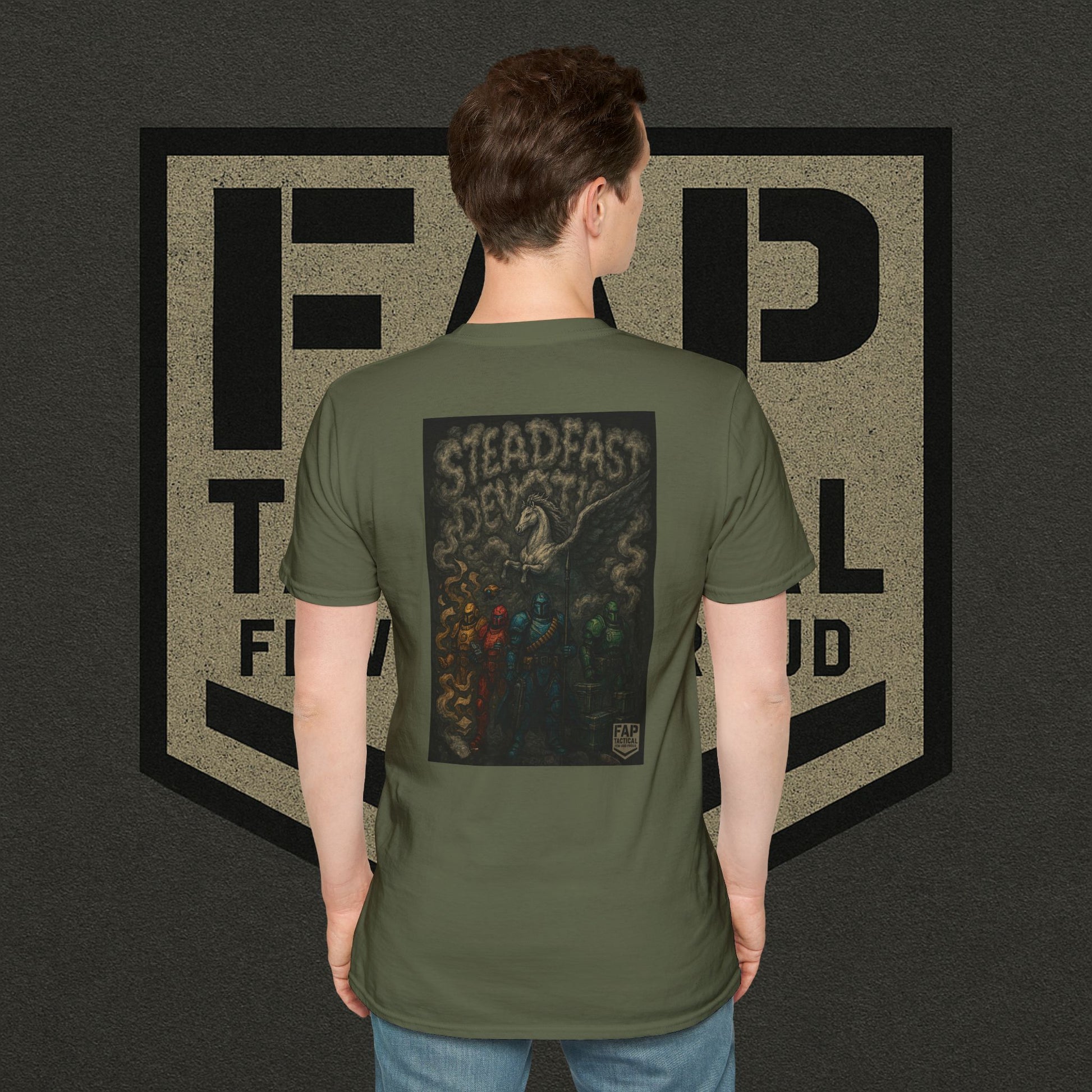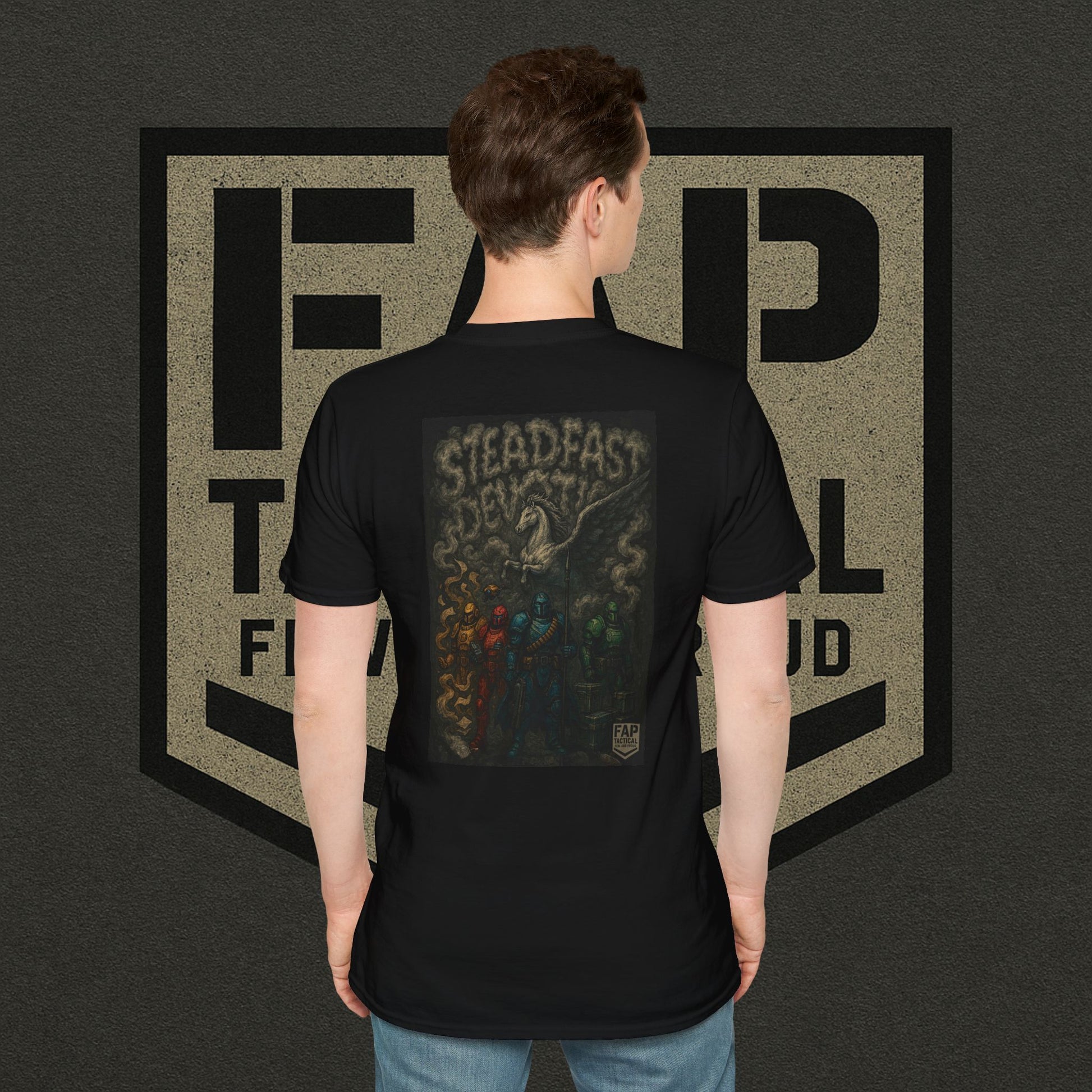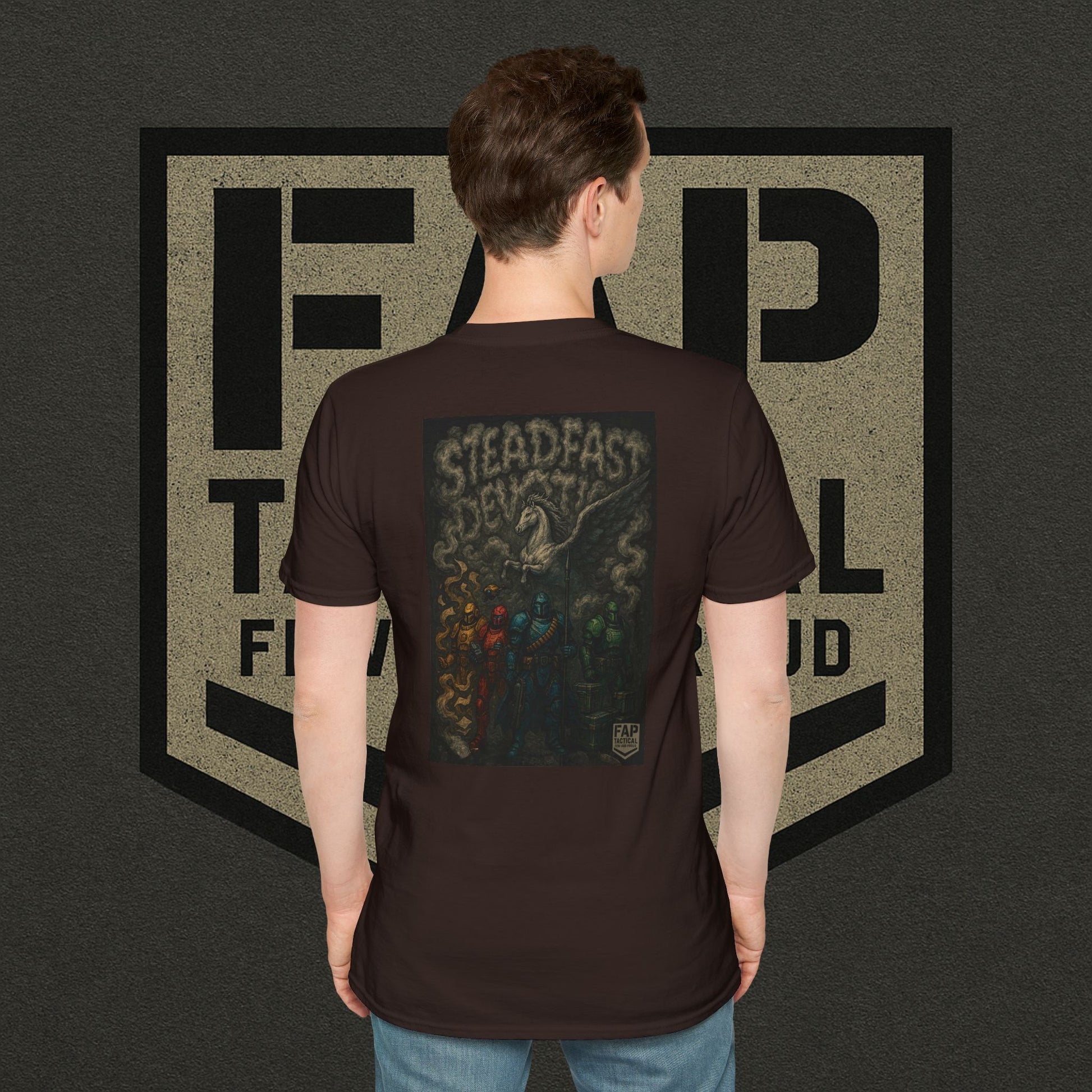 A crisp, lightweight tee built to be worn every day and to stand out without shouting. The front carries a small, subtle emblem over the heart, while the back shows a bold, illustrated figure rising through curling smoke under the headline “SET THE PACE.” The soft ring-spun cotton feels smooth against skin and keeps prints sharp; ribbed neck and shoulder tape hold the shape through repeat wear. Wear it layered under a jacket for urban nights or alone on warm days — it reads like attitude and steady craft in one shirt.