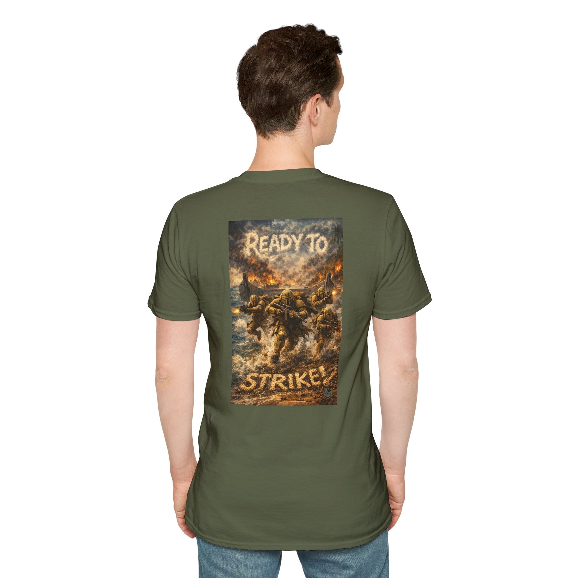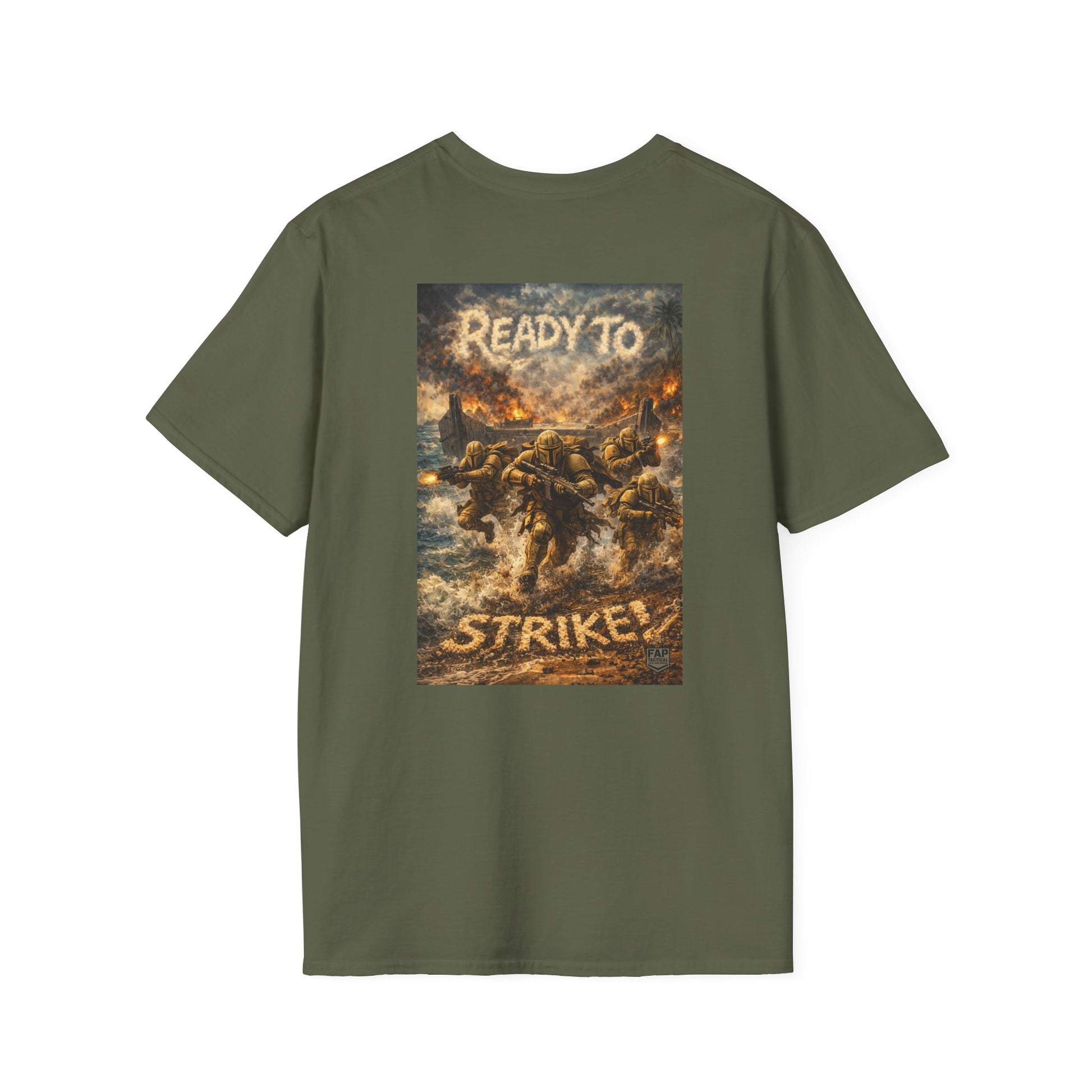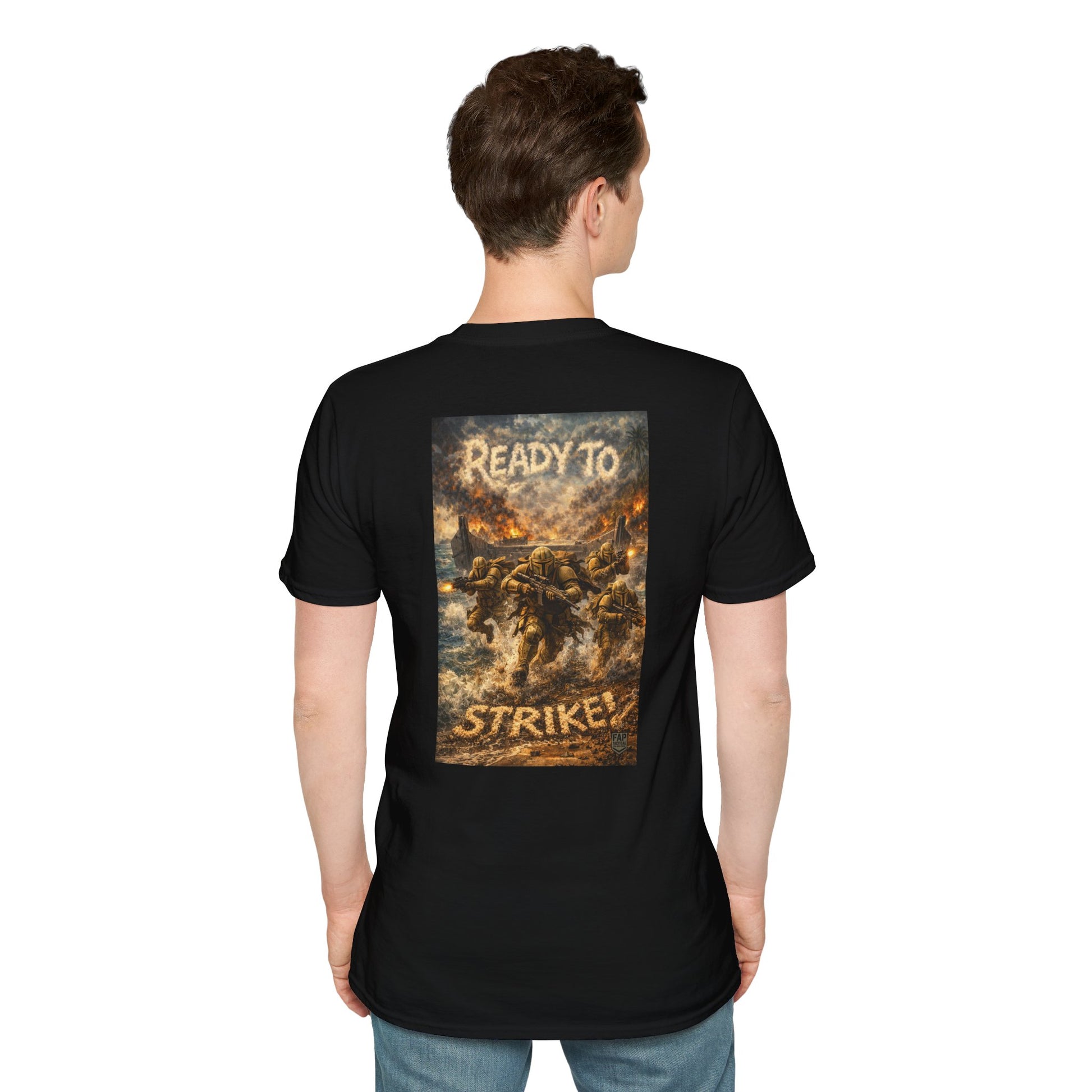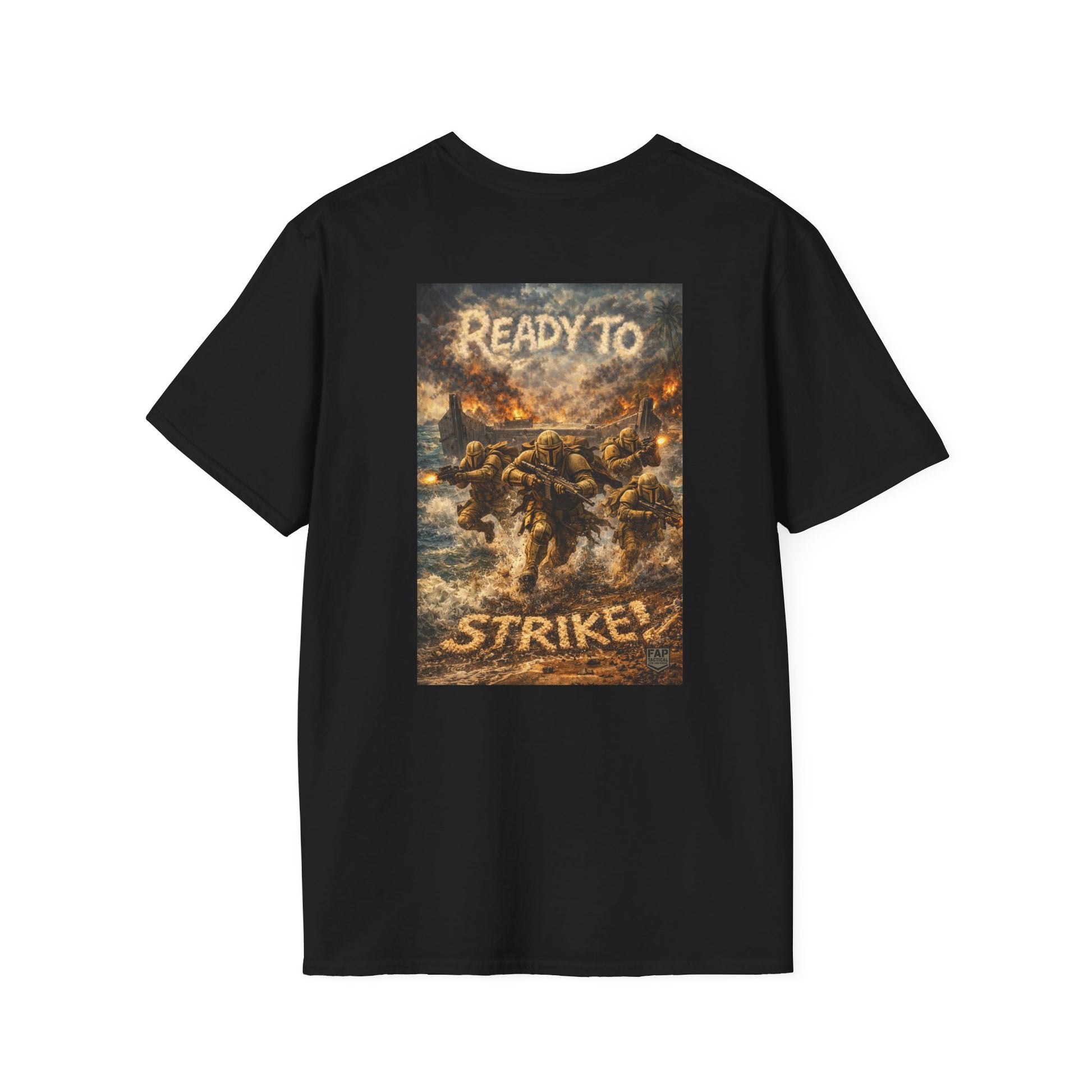 A soft, breathable cotton tee that carries a low-key front emblem and a bold, cinematic back print. The design evokes an ominous, action-filled moment — shadowed warriors and smoldering light — giving the shirt a storyteller’s energy. Wear it layered under a jacket for nights at the show, or plain with jeans when you want the artwork to speak for you. The lightweight fabric drapes comfortably and holds print detail crisply, so the graphic stays striking through repeated wear. Subtle front branding keeps the look wearable day-to-day while the back panel delivers the dramatic scene that fans will notice and appreciate.