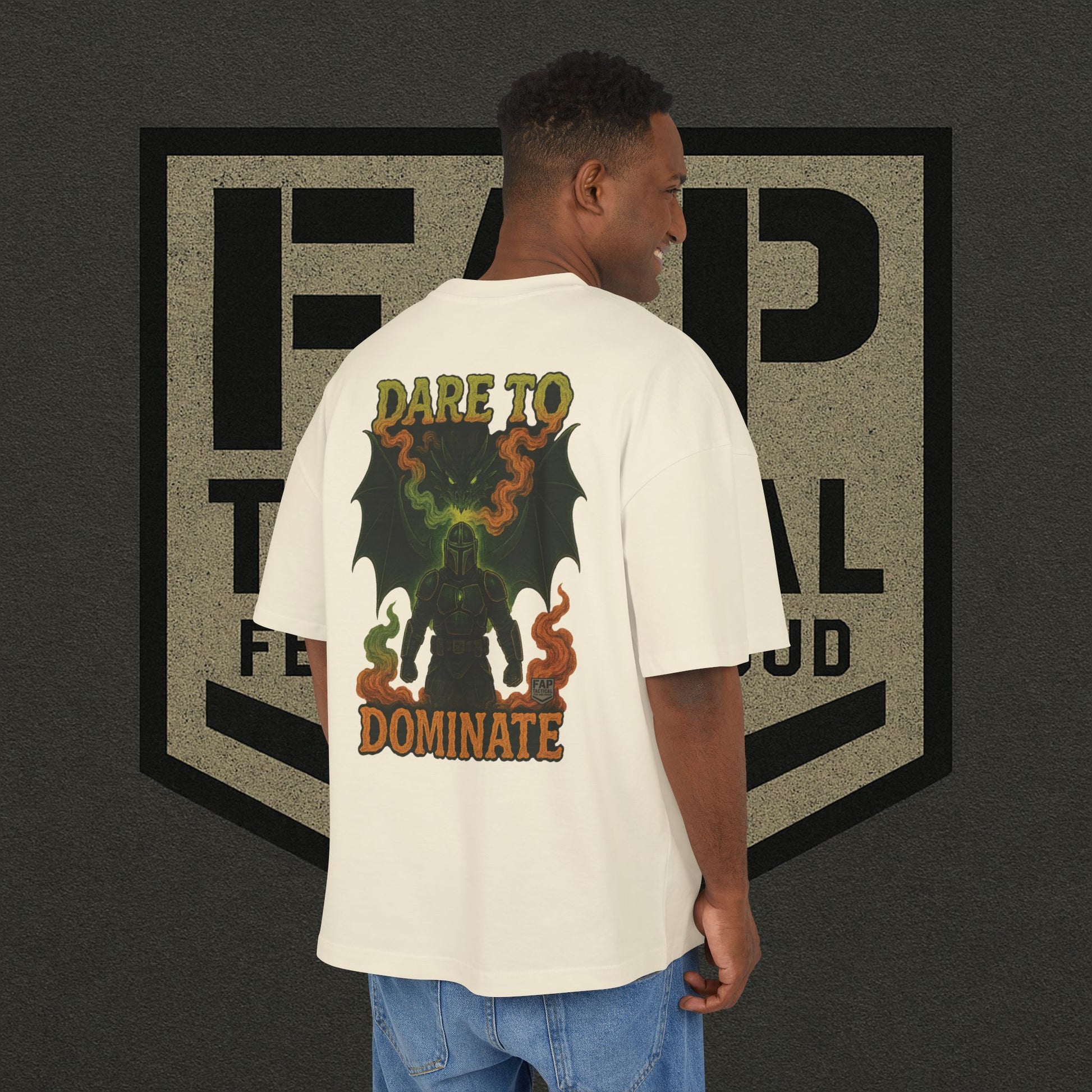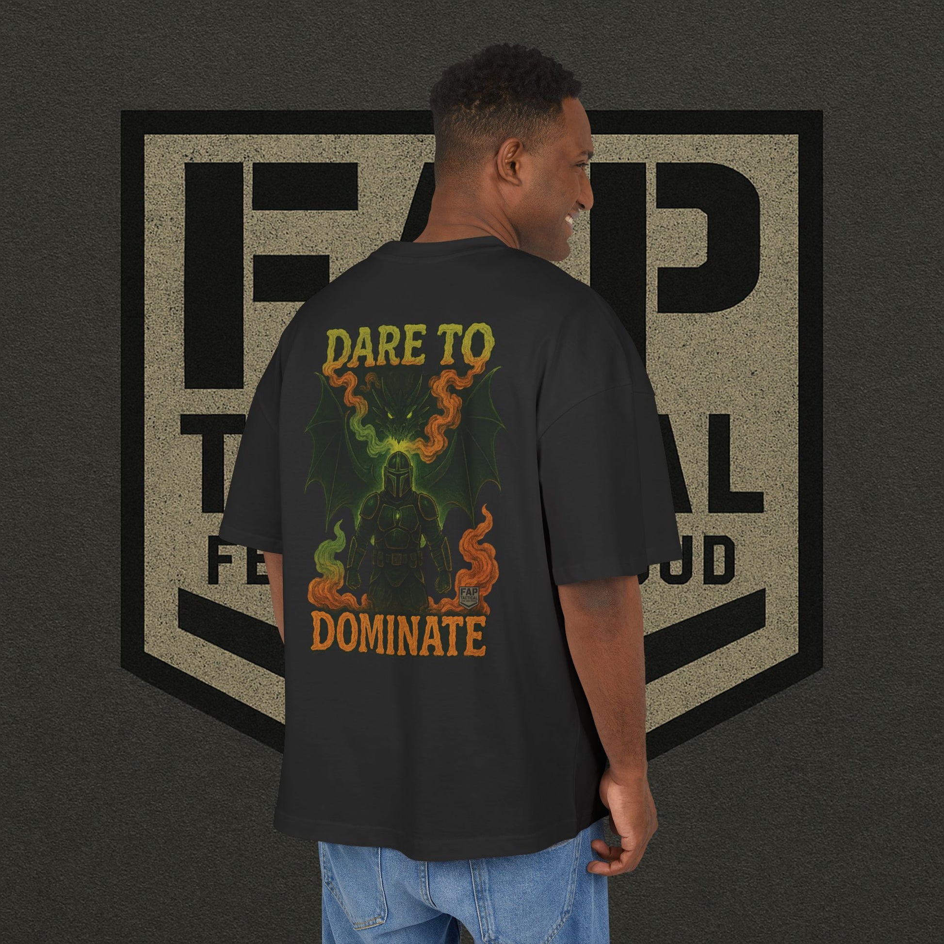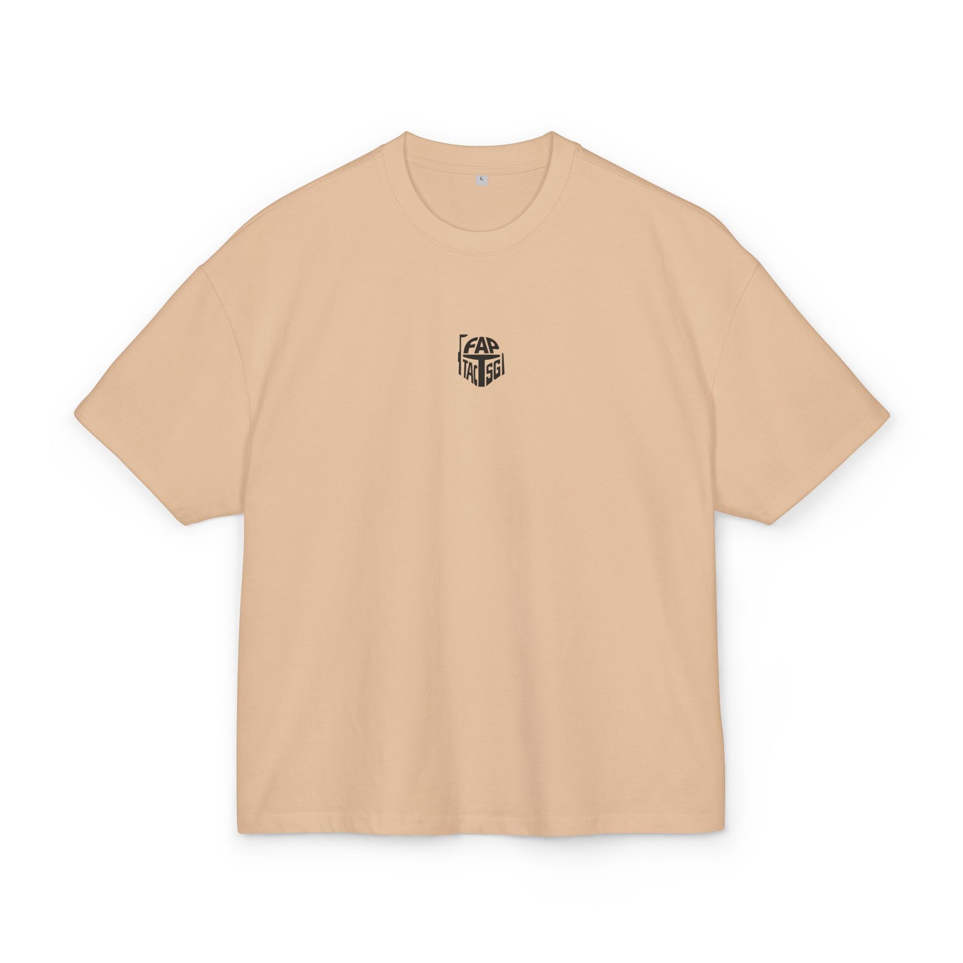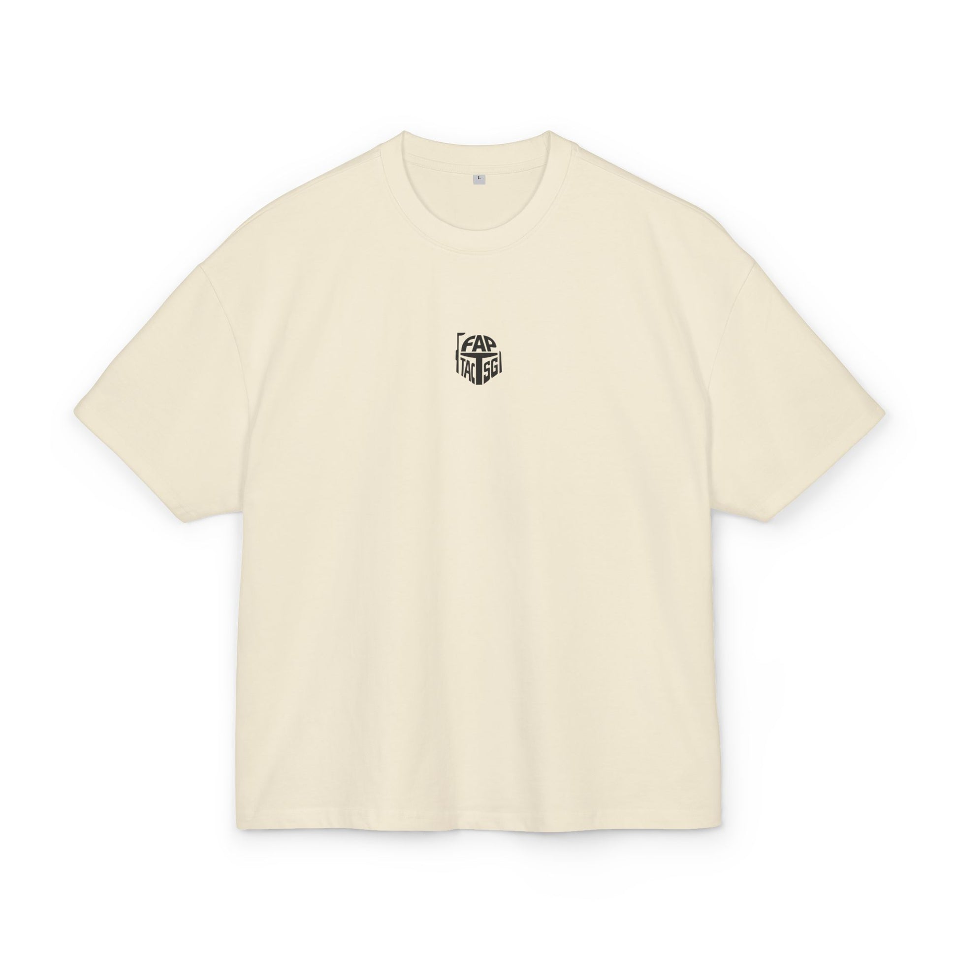 This heavyweight boxy tee brings bold, graphic energy to a relaxed silhouette. Built from dense 100% cotton, it feels substantial on the body while keeping print detail crisp and rich. The dropped shoulders and slightly cropped, oversized cut create an easy, lived-in look that layers effortlessly under jackets or stands out on its own. Front shows a small, badge-like emblem while the back explodes with a fiery, vintage-style illustration reading “FEW AND PROUD,” giving the shirt a rebellious, band-poster vibe. Wear it when you want your outfit to speak with attitude — rough textures, deep color contrast, and sturdy construction that holds shape wear after wear.