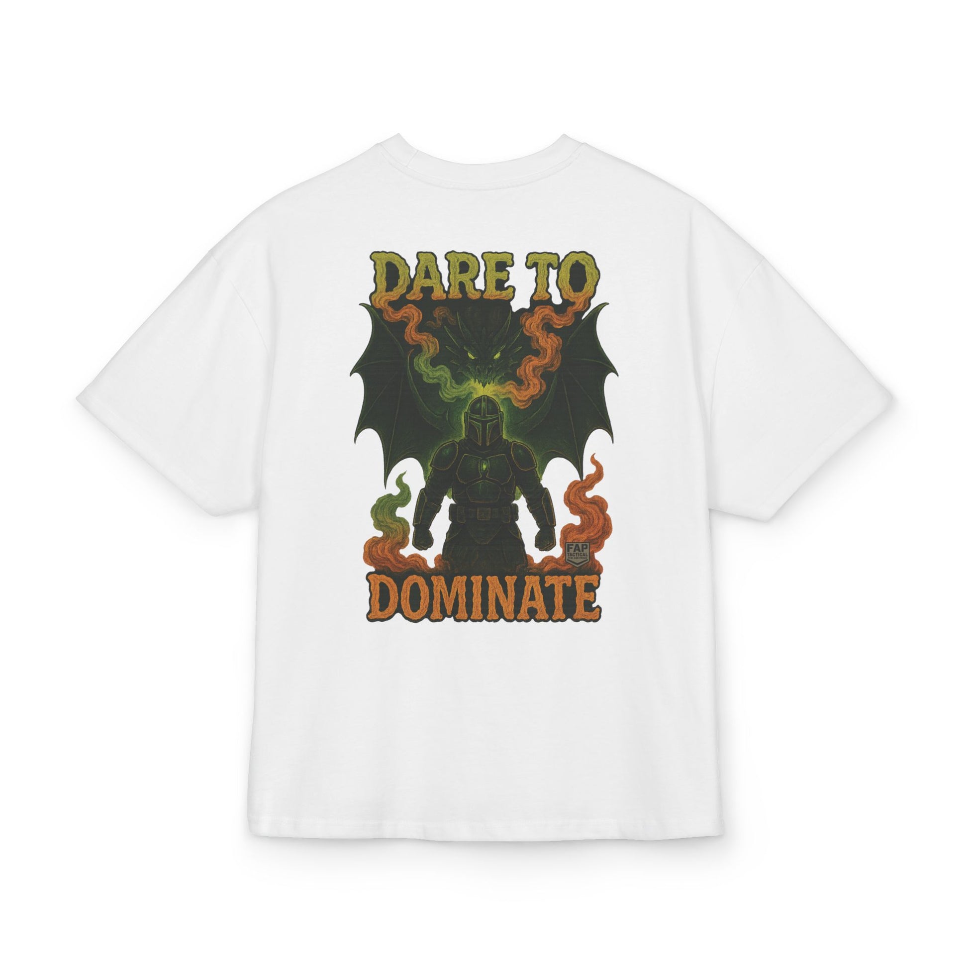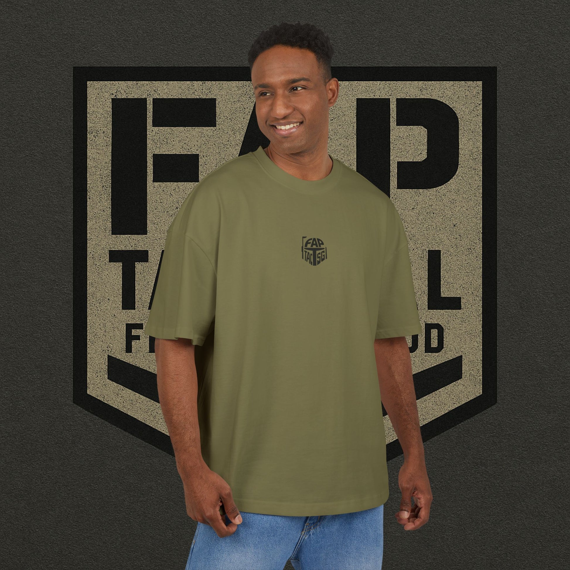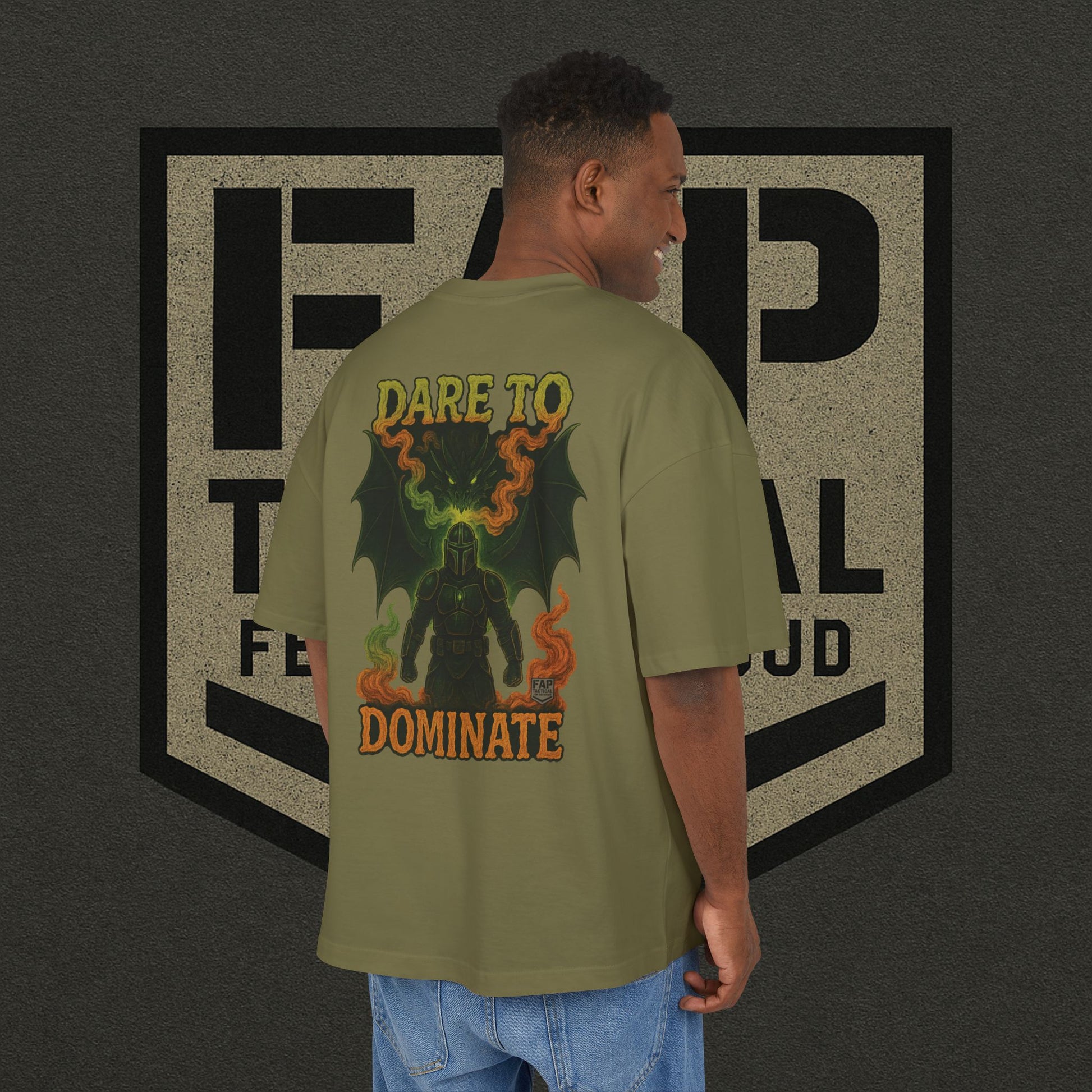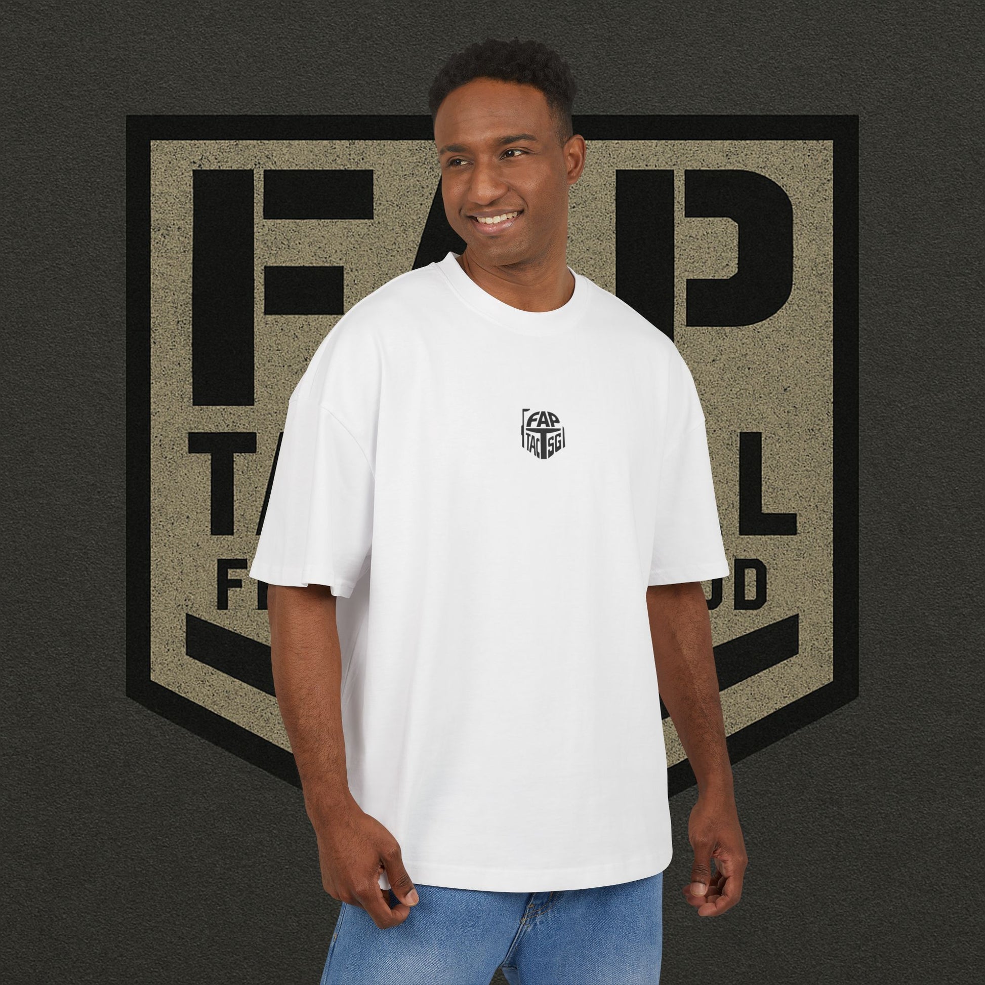 This heavyweight boxy tee brings bold, graphic energy to a relaxed silhouette. Built from dense 100% cotton, it feels substantial on the body while keeping print detail crisp and rich. The dropped shoulders and slightly cropped, oversized cut create an easy, lived-in look that layers effortlessly under jackets or stands out on its own. Front shows a small, badge-like emblem while the back explodes with a fiery, vintage-style illustration reading “FEW AND PROUD,” giving the shirt a rebellious, band-poster vibe. Wear it when you want your outfit to speak with attitude — rough textures, deep color contrast, and sturdy construction that holds shape wear after wear.