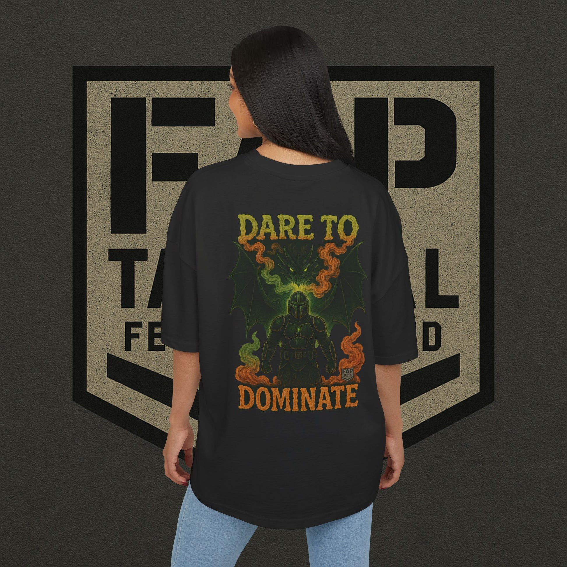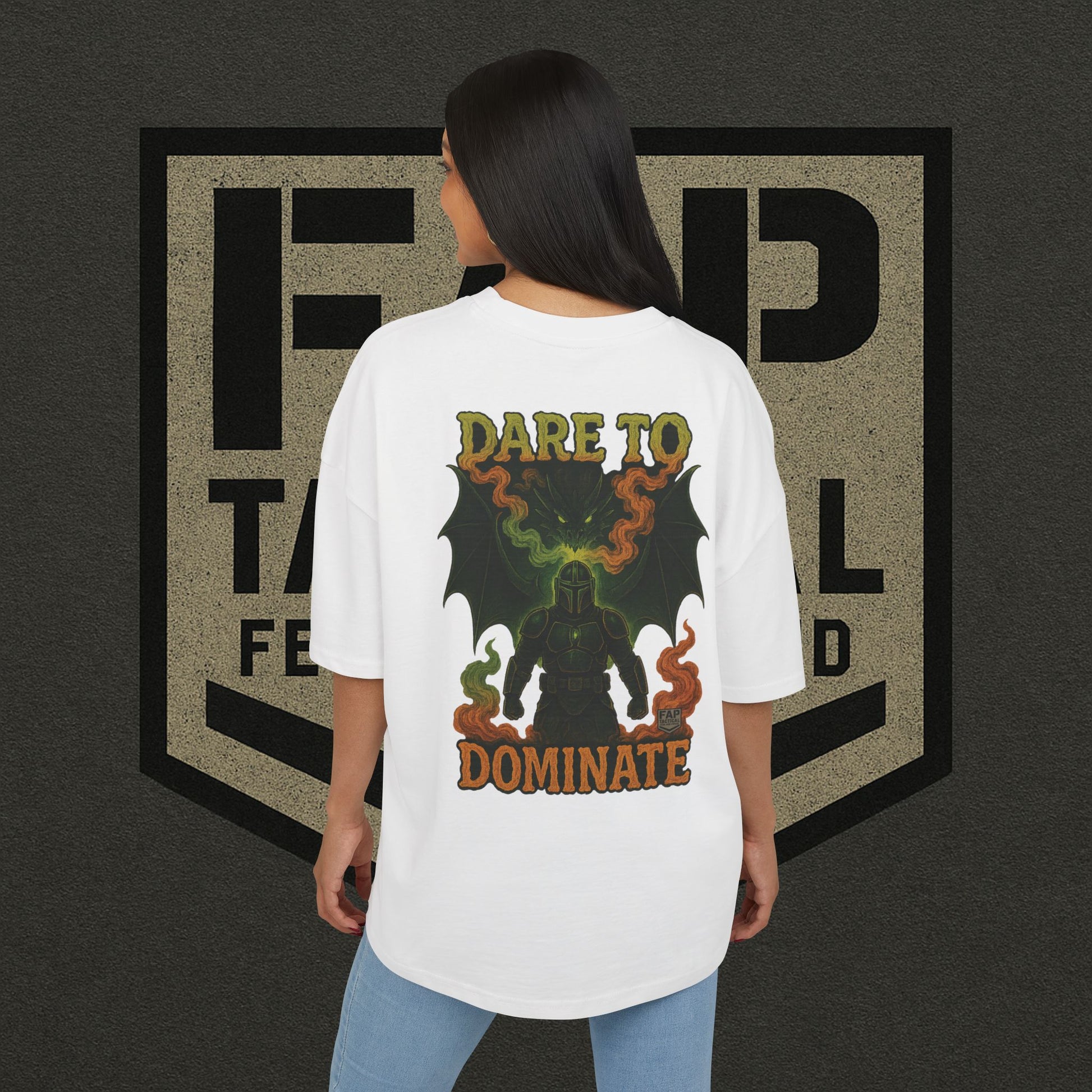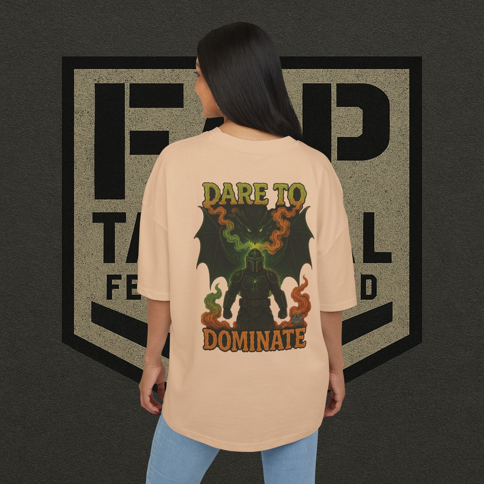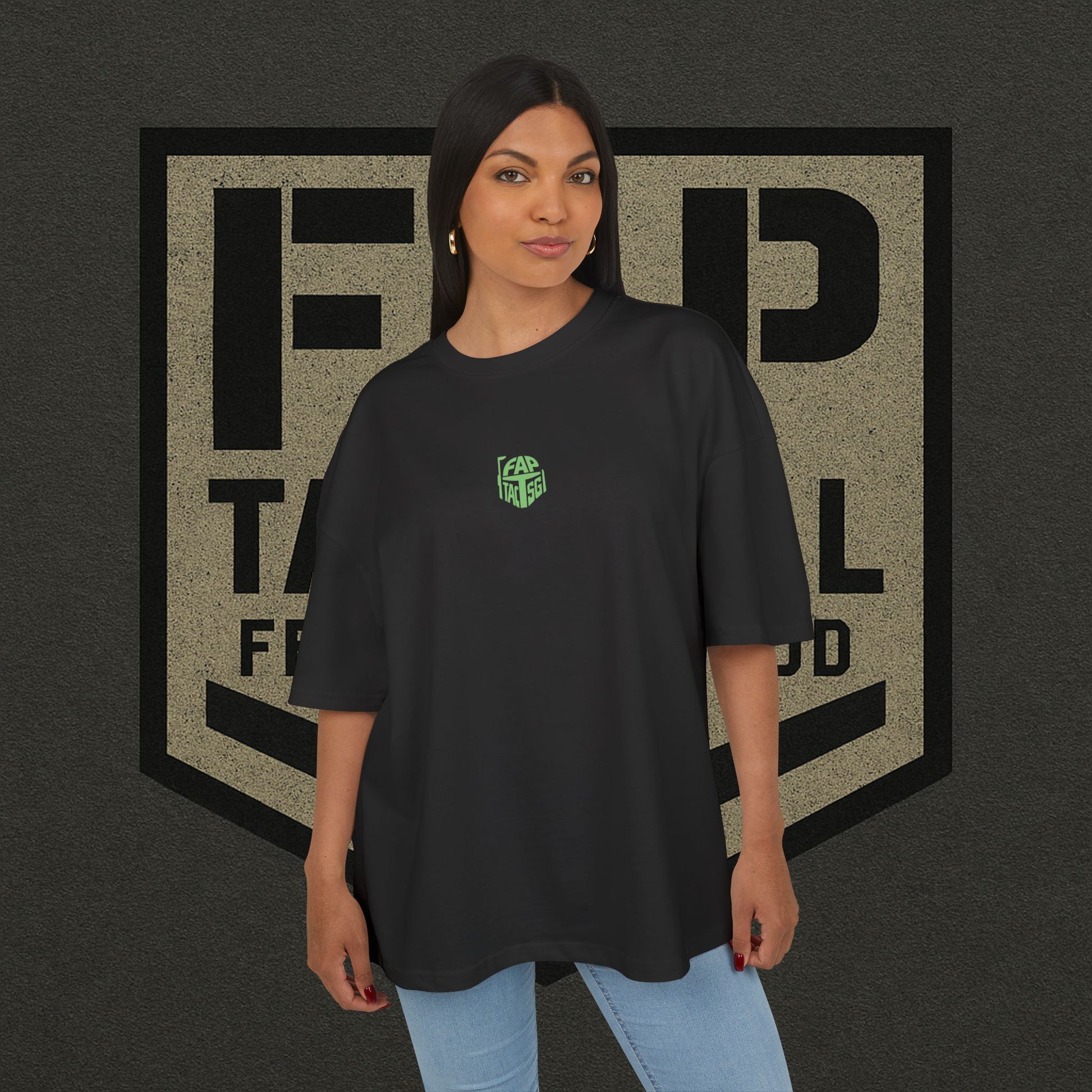 This heavyweight boxy tee brings bold, graphic energy to a relaxed silhouette. Built from dense 100% cotton, it feels substantial on the body while keeping print detail crisp and rich. The dropped shoulders and slightly cropped, oversized cut create an easy, lived-in look that layers effortlessly under jackets or stands out on its own. Front shows a small, badge-like emblem while the back explodes with a fiery, vintage-style illustration reading “FEW AND PROUD,” giving the shirt a rebellious, band-poster vibe. Wear it when you want your outfit to speak with attitude — rough textures, deep color contrast, and sturdy construction that holds shape wear after wear.